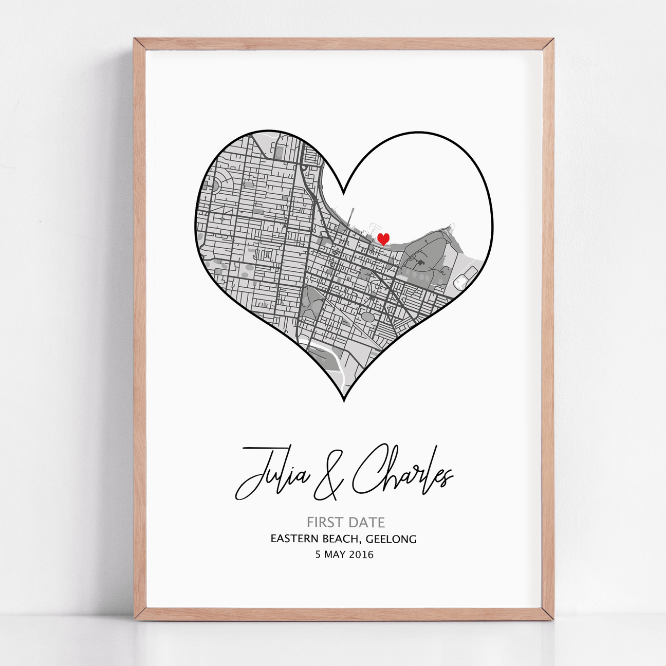 Remember your first date as a valentine's day gift! Capture the moment in a heart print to let your partner know how much it meant to you. Choose from a range of colours and sizes!