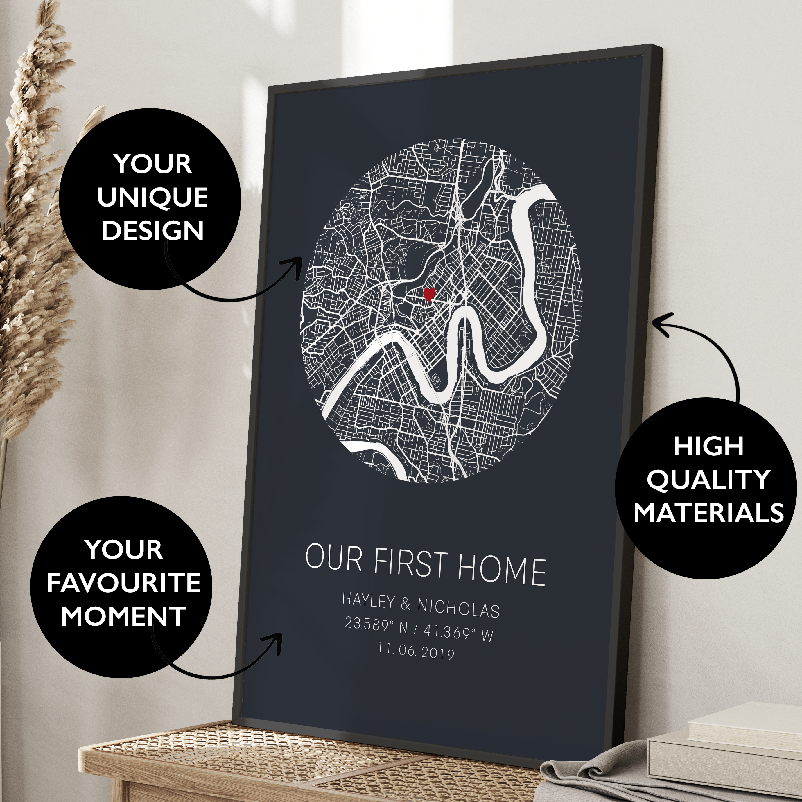 A personalised map is the perfect housewarming gift to celebrate one of life’s greatest moments.