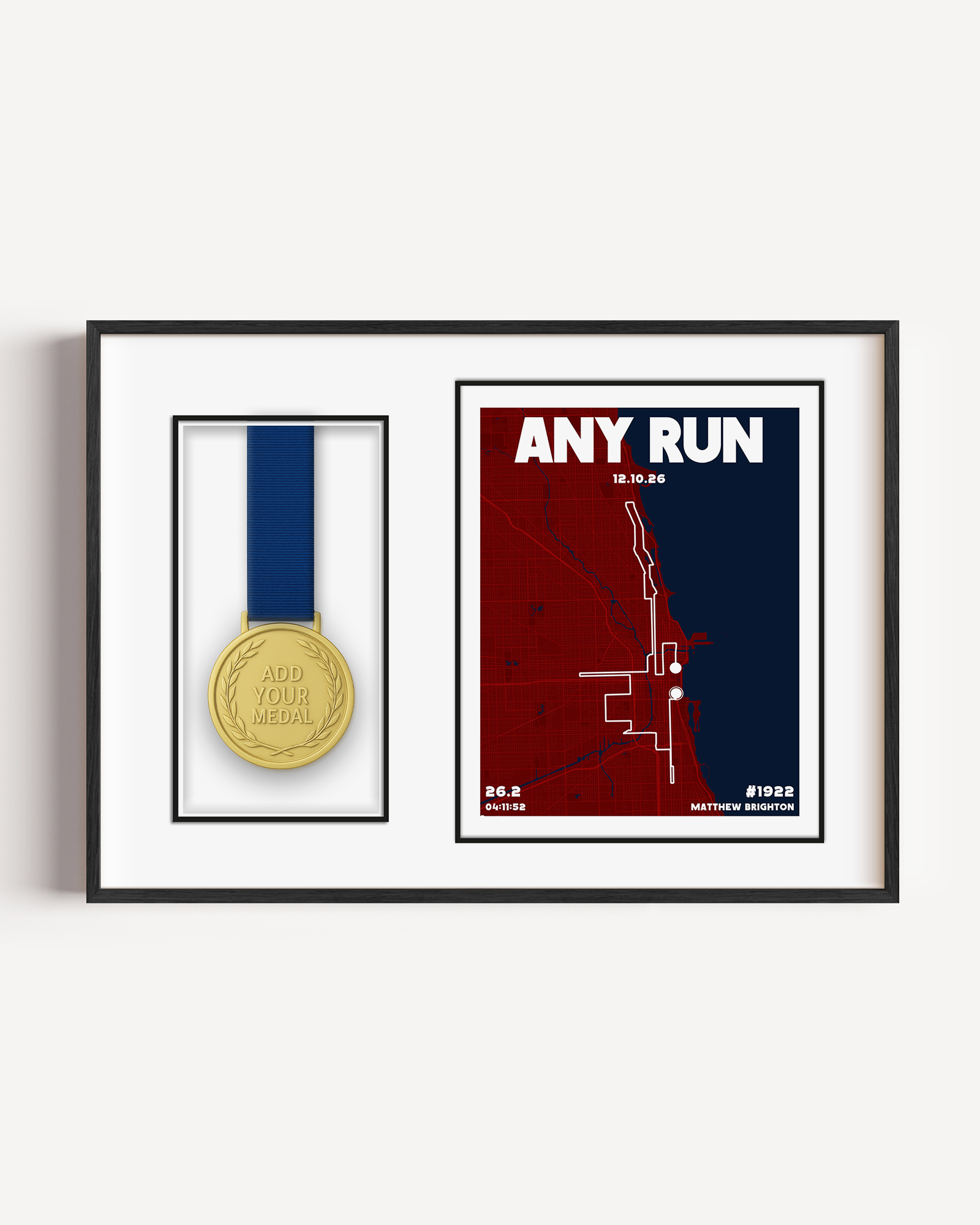 Make it truly meaningful: customize the map with the runner’s name, race, date, location, and finish time. A personal and thoughtful gift they’ll treasure for years.