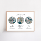 A custom our story map print is the perfect wedding gift for couples, anniversary gift for husband or wife or paper anniversary gift. It’s also a great wedding morning gift for your partner to surprise your future husband or wife with. Customise the text to suit your favourite three occasions.
