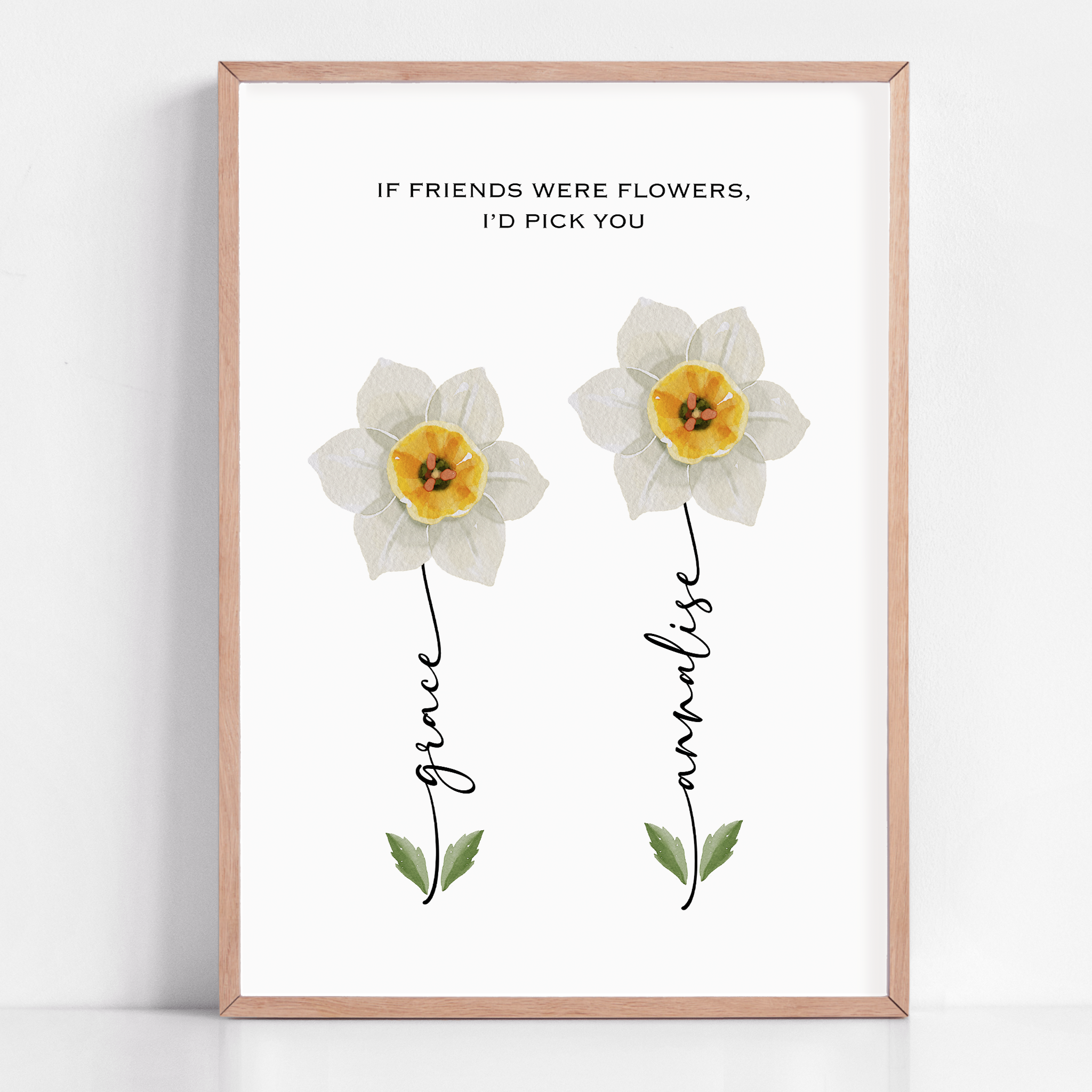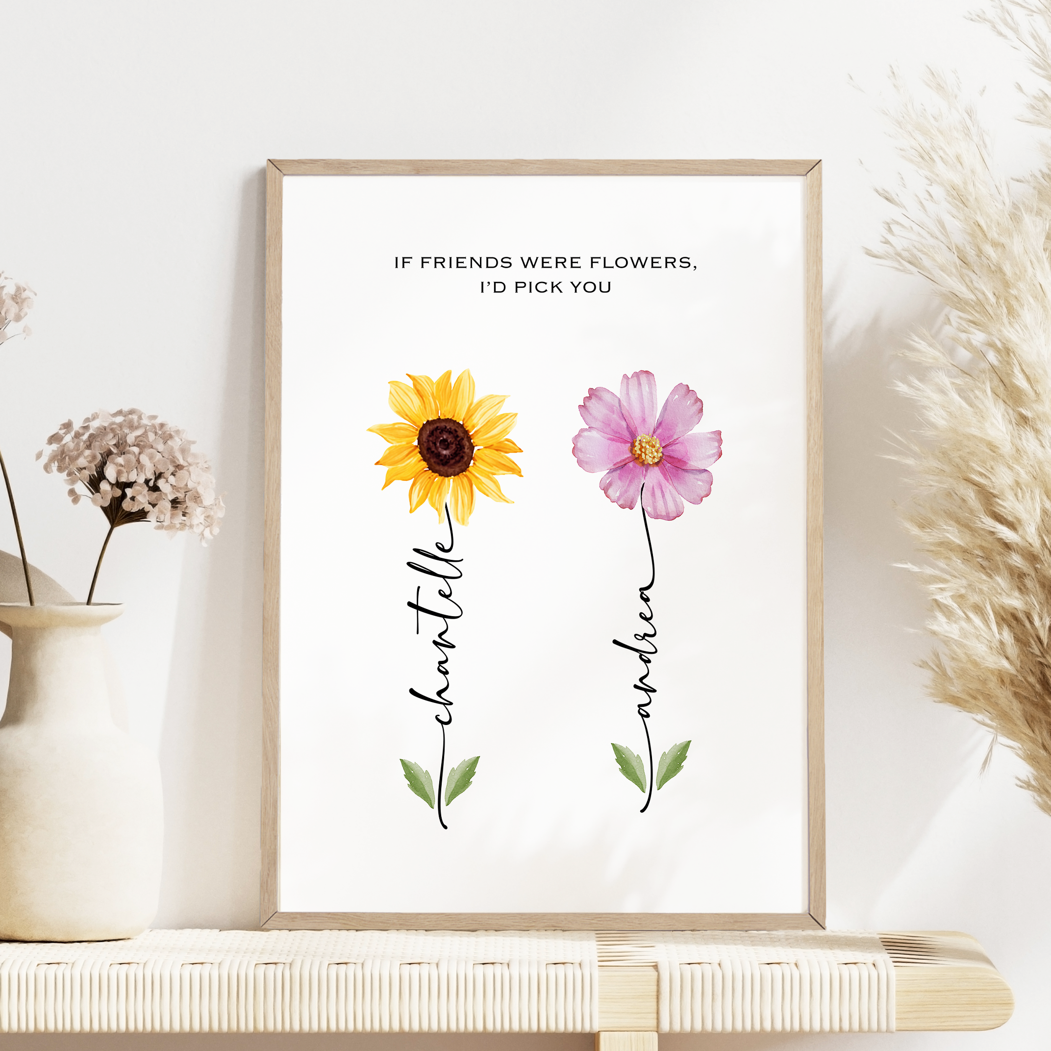 Celebrate the beauty of friendship with our Friendship Custom Print – the perfect gift for your best friend on any occasion, from birthdays to simply saying "thank you." Featuring a charming watercolor flower design and a heartfelt friendship quote, this art print is a timeless symbol of the bond you share. Each custom print is carefully crafted to capture the essence of your friendship, making it a unique and meaningful gift that your friend will cherish forever.