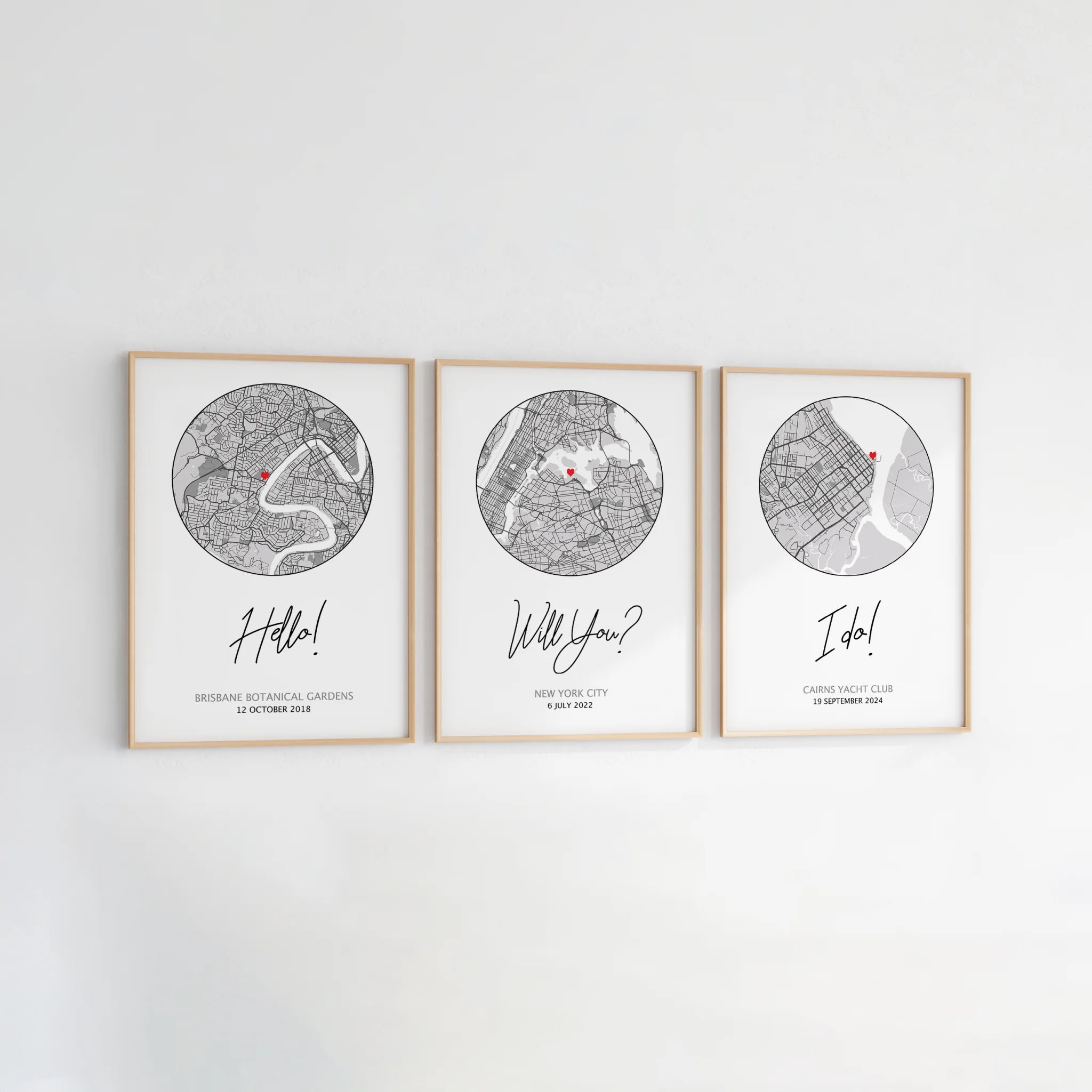 A custom our story map print is the perfect wedding gift for couples, anniversary gift for husband or wife or paper anniversary gift. It’s also a great wedding morning gift for your partner to surprise your future husband or wife with. Customise the text to suit your favourite three occasions.