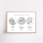 A custom our story map print is the perfect wedding gift for couples, anniversary gift for husband or wife or paper anniversary gift. It’s also a great wedding morning gift for your partner to surprise your future husband or wife with. Customise the text to suit your favourite three occasions.