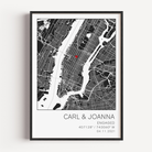 Each print is designed with a minimalist, modern map featuring a red heart to highlight your special location — be it where you met, got engaged, or any place that holds sentimental value.