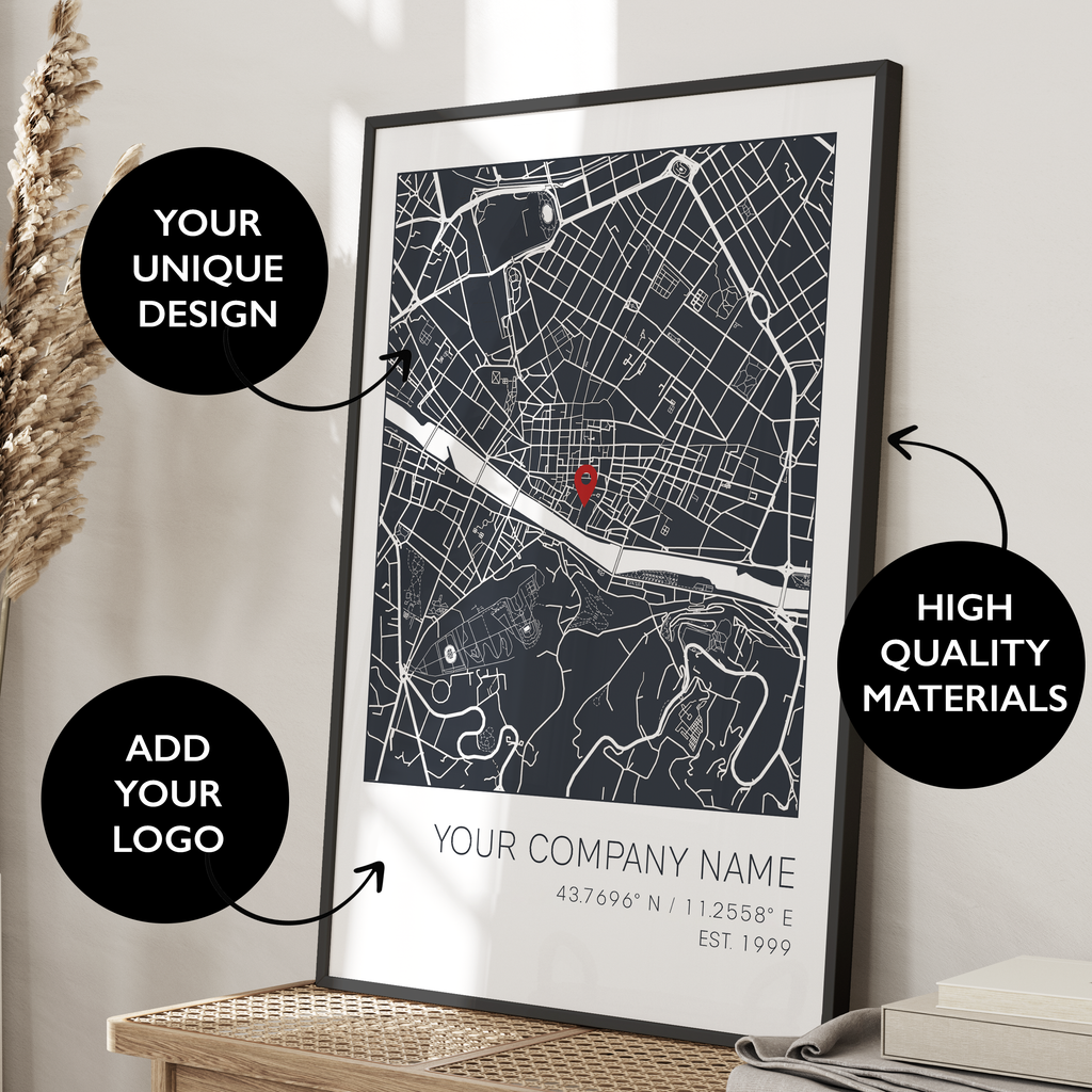 Looking for a thoughtful corporate gift? Celebrate new business launches with a custom logo map print that inspires pride and long-term vision.