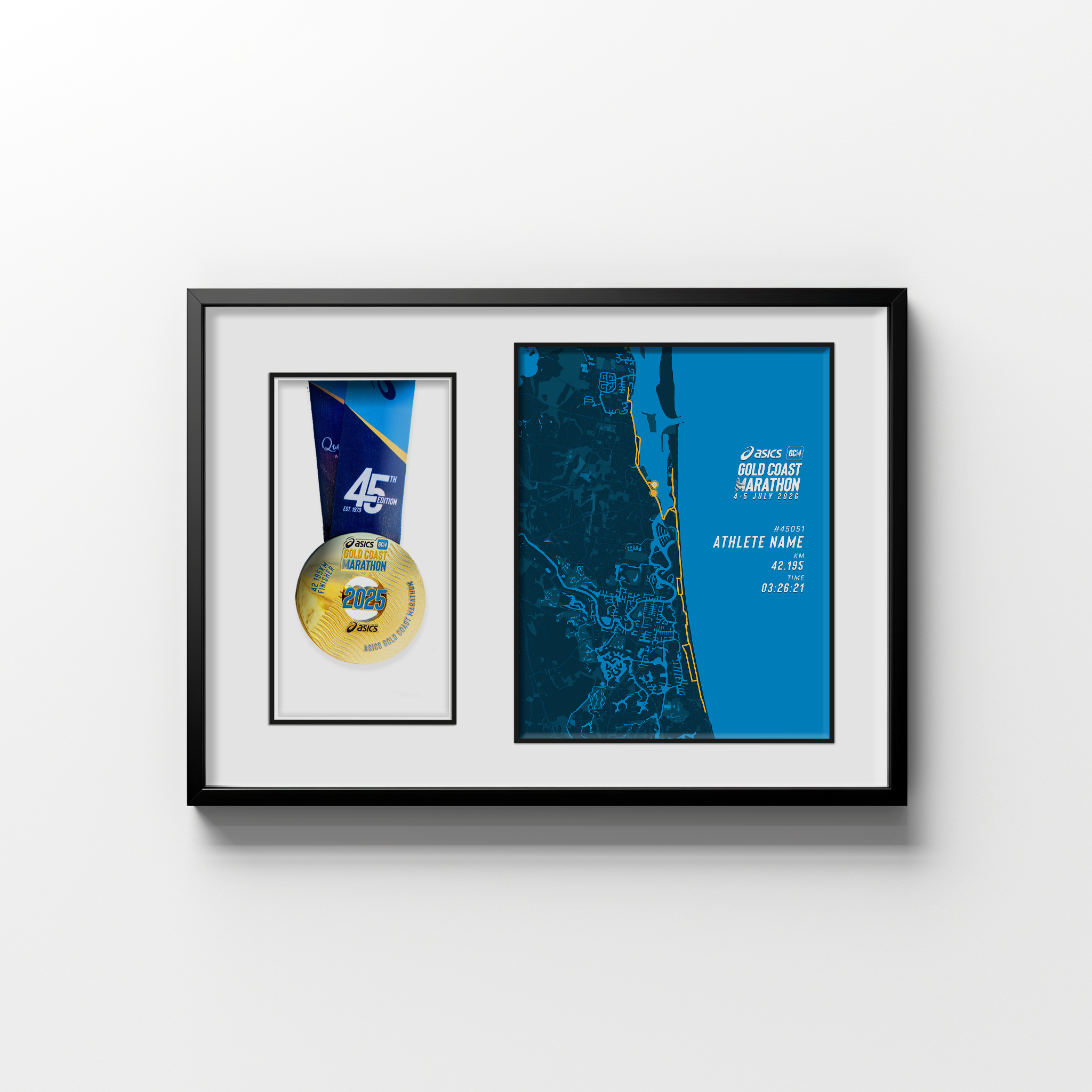 Estamos orgullosos de asociarnos con ASICS Gold Coast Marathon para crear el marco de exhibición de medallas ASICS Gold Coast Marathon 2026.
