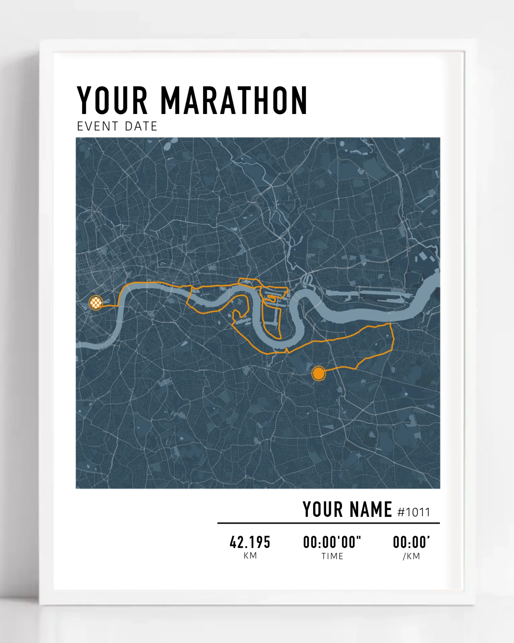 Que ce soit votre premier marathon, un record personnel ou une course caritative qui vous tient à cœur, cette affiche personnalisée capture l'essence de votre aventure. Conçue pour mettre en valeur votre parcours unique, elle est bien plus qu'un simple objet de décoration : c'est un hommage durable à vos efforts, votre dévouement et votre victoire. Idéale pour vous inspirer pour votre prochain marathon ou pour immortaliser les souvenirs d'un exploit inoubliable, cette affiche personnalisée vous permet de revivre votre performance au quotidien.