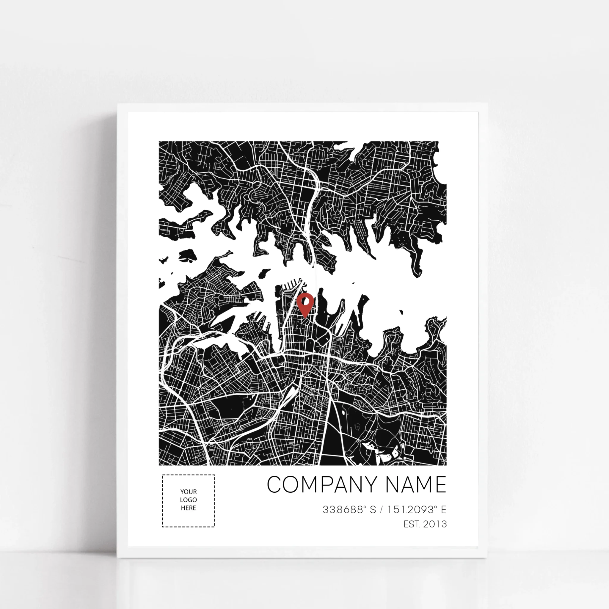 Our business anniversary map print celebrates your business and the location where it all began.