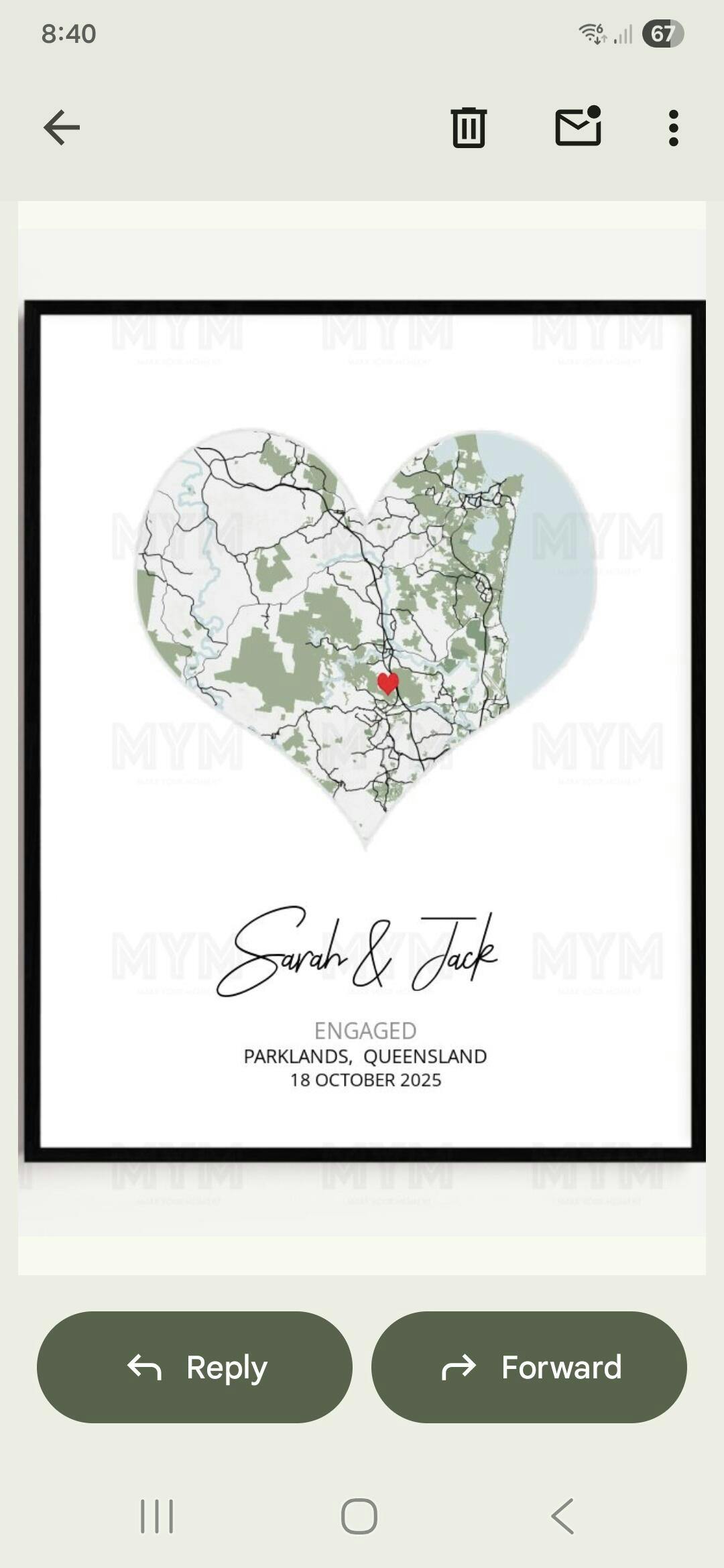 Customized with your special location, names & engagement date