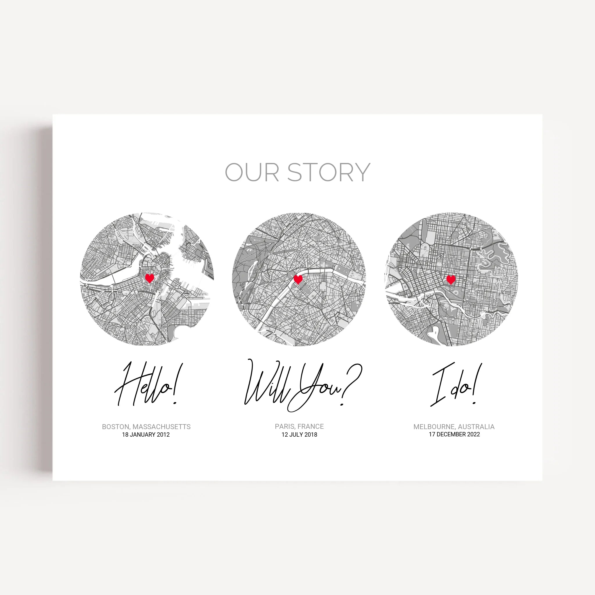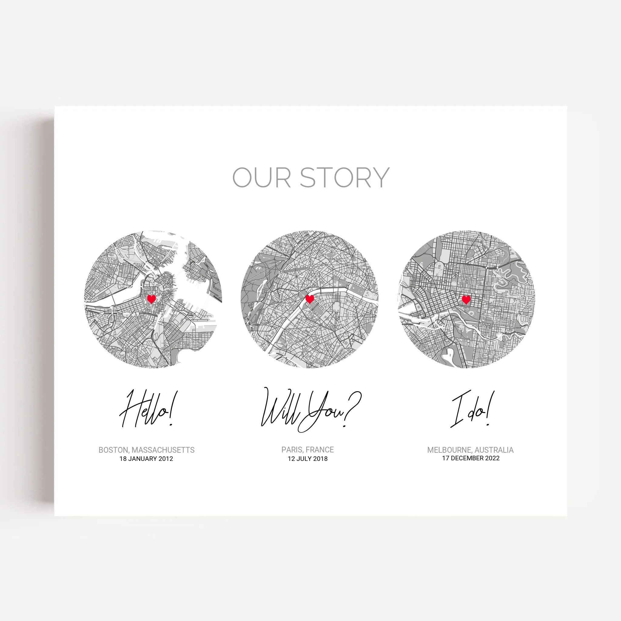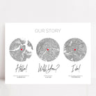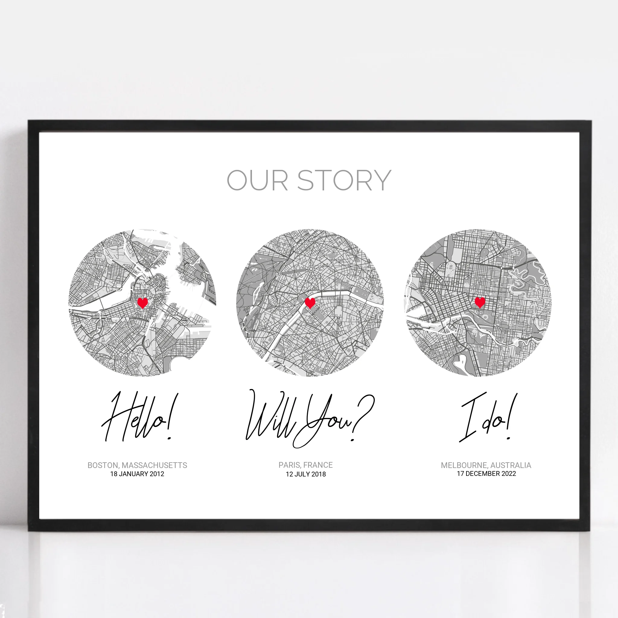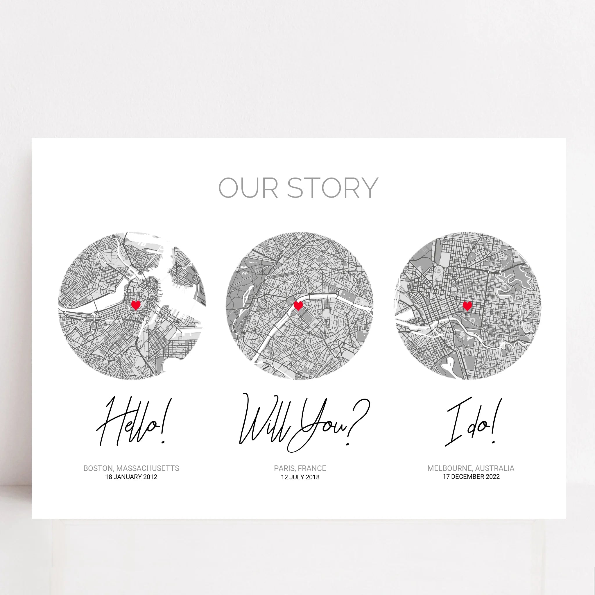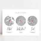 Tell your story with a personalised Our Story Print. The perfect paper anniversary gift, wedding gift or anniversary gift to celebrate the Hello, Will You and I do, or the, Met, Engaged, Married moments!
