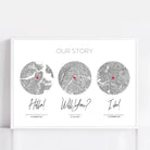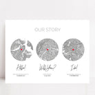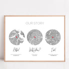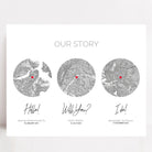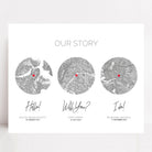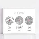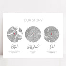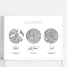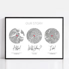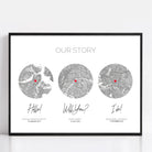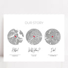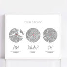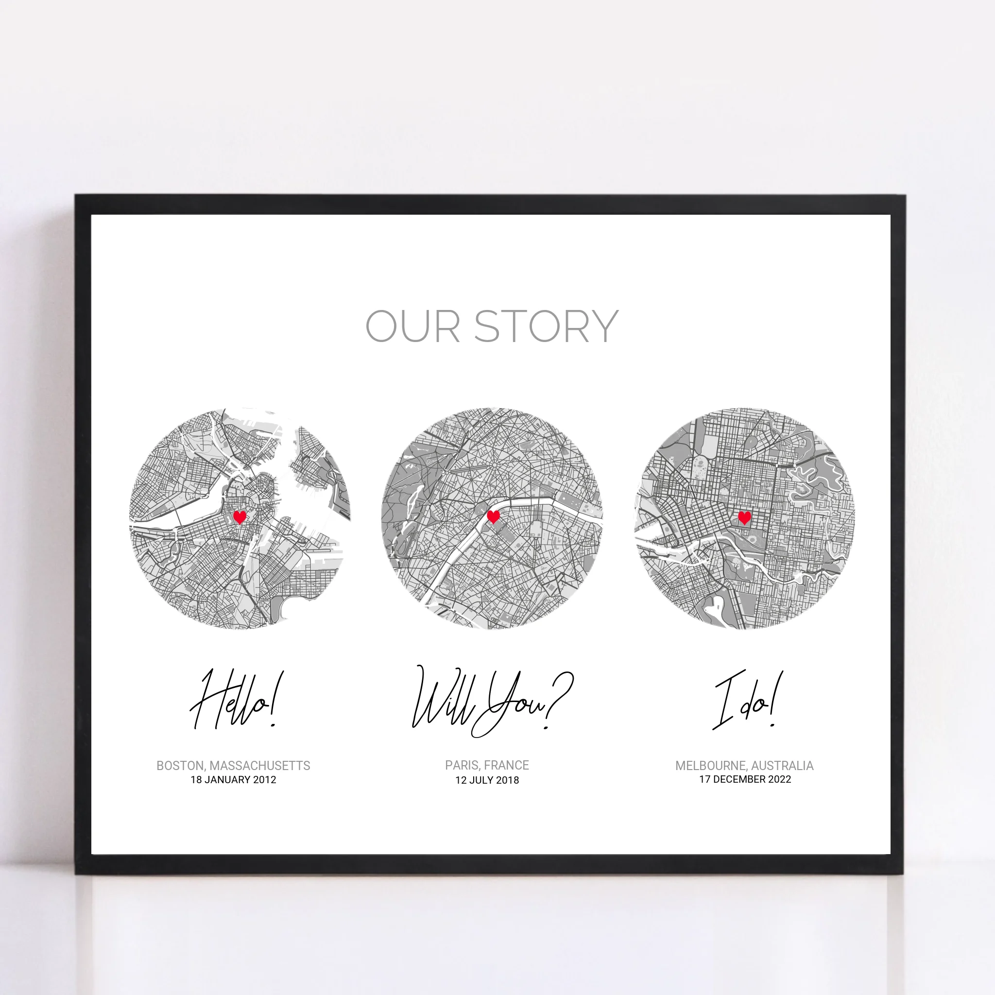 A custom our story map print is the perfect wedding gift for couples, anniversary gift for husband or wife or paper anniversary gift. It’s also a great wedding morning gift for your partner to surprise your future husband or wife with. Capture your favourite moments together and tell your story through a memorable and unique gift that will last a lifetime.