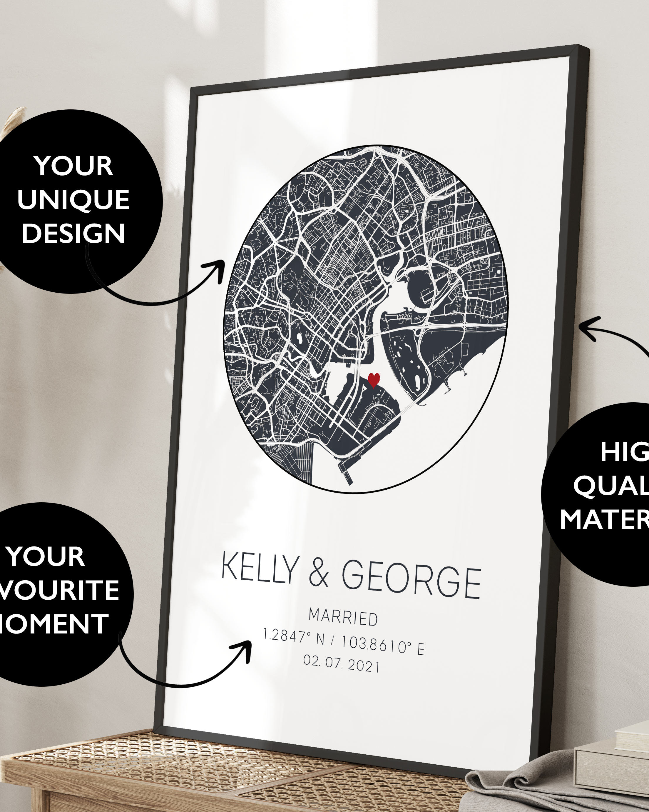 A custom map print is the perfect wedding gift for couples, friends or family. It’s also a great wedding gift for your partner to surprise them with on the morning of your wedding. After spending so long choosing the perfect wedding venue, our custom married maps capture this moment and location to remember forever as wall art.