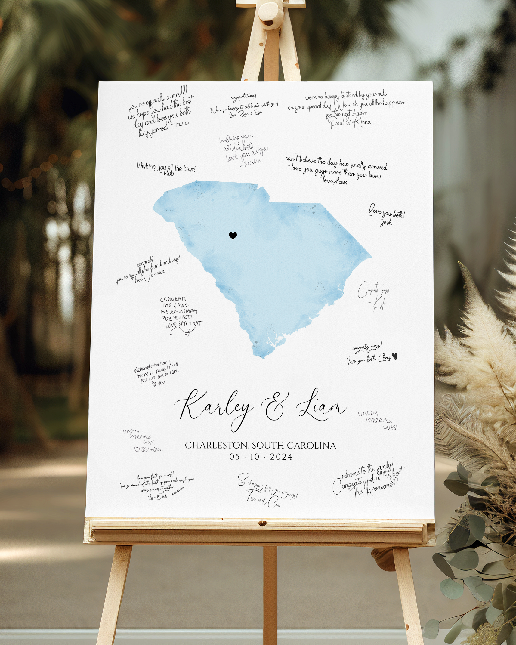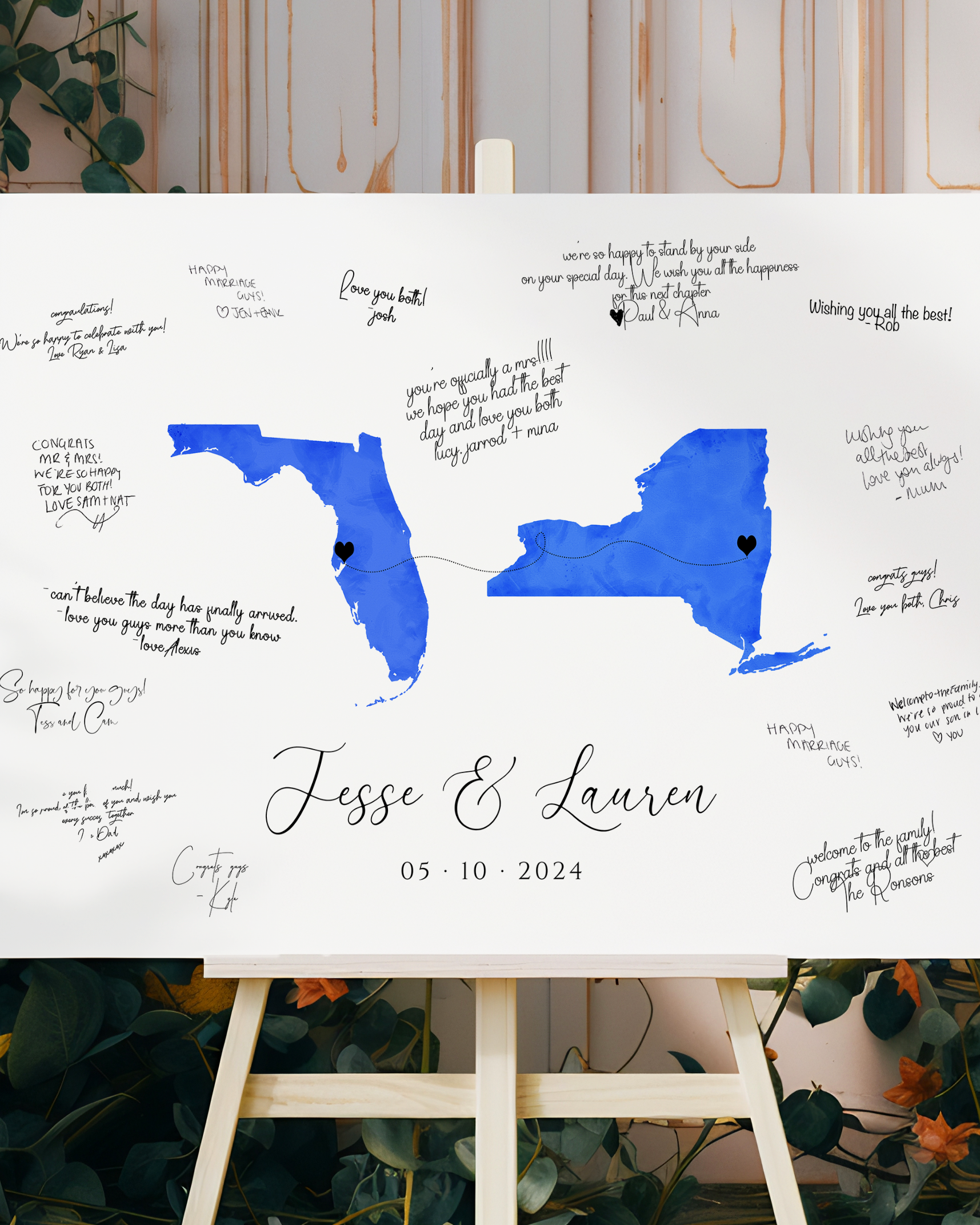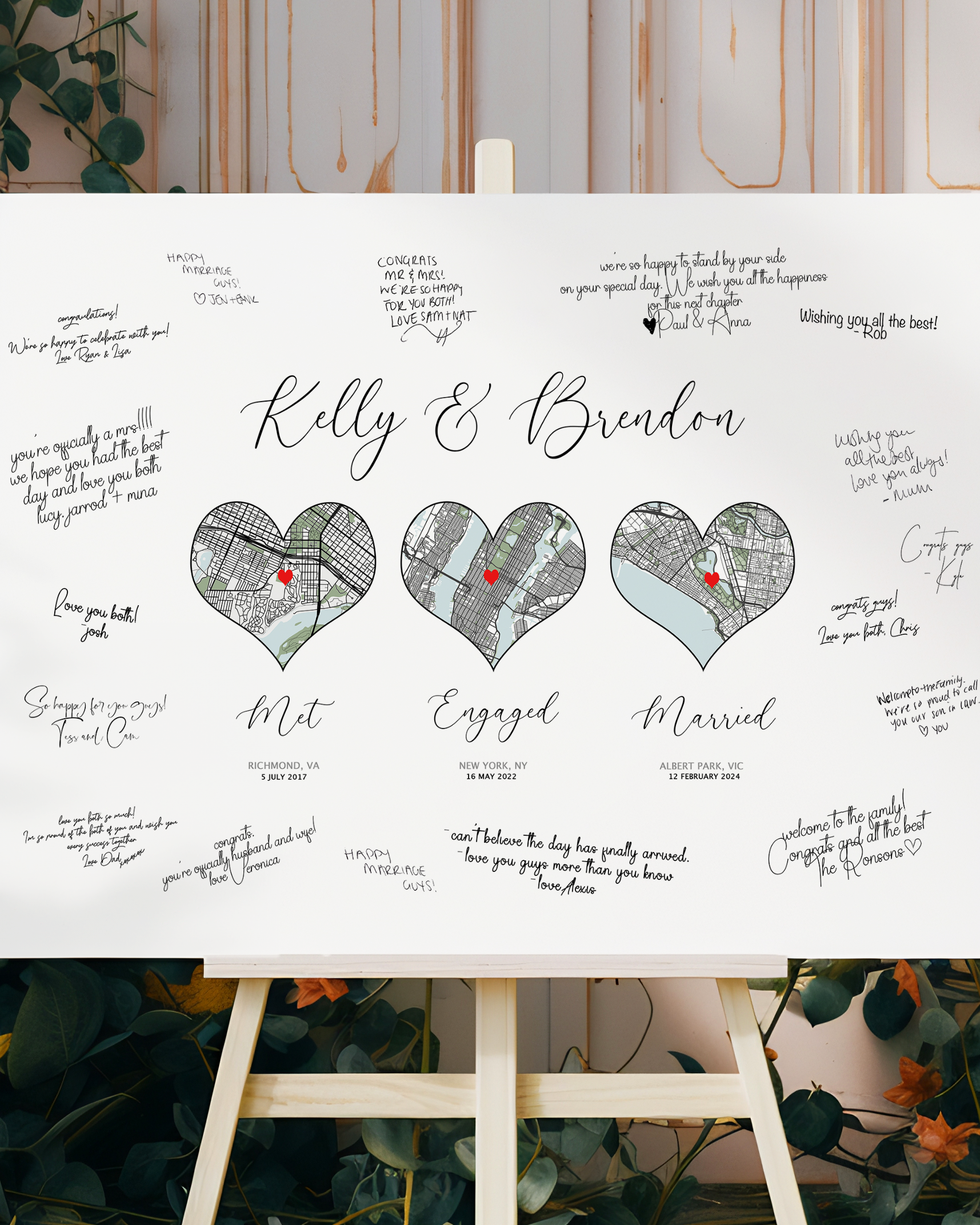 A personalized location print captures the newlyweds special day and most treasured memories, designed to match their home decor and style with many options to choose from.